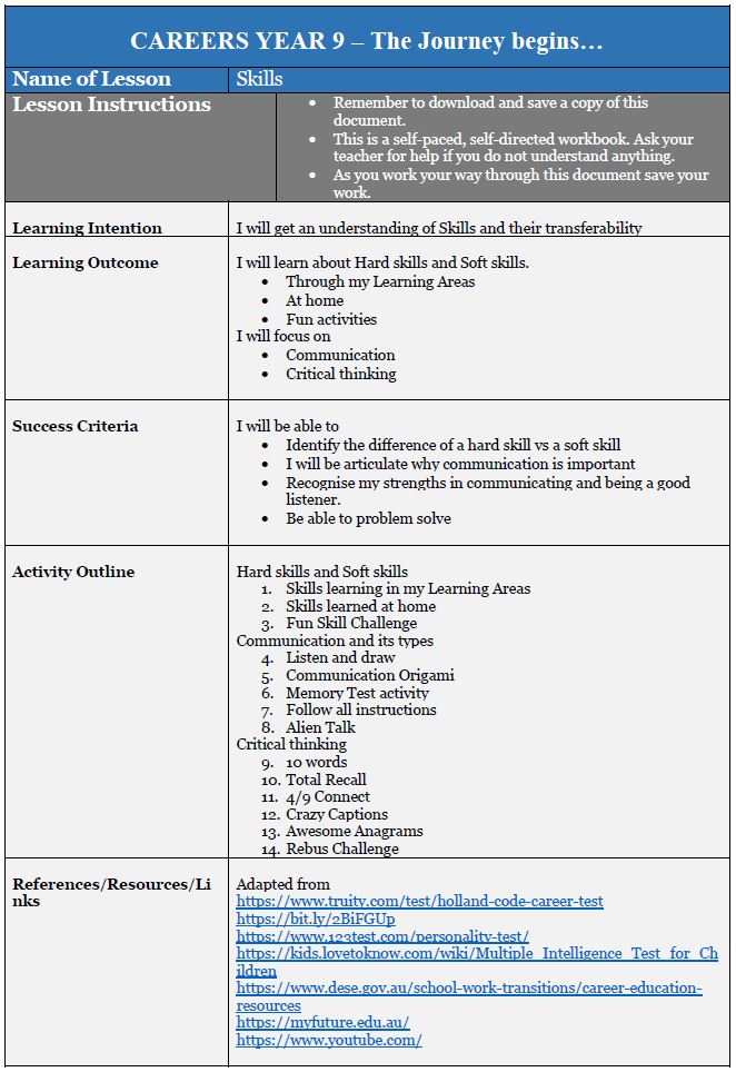 Skills: introduction video